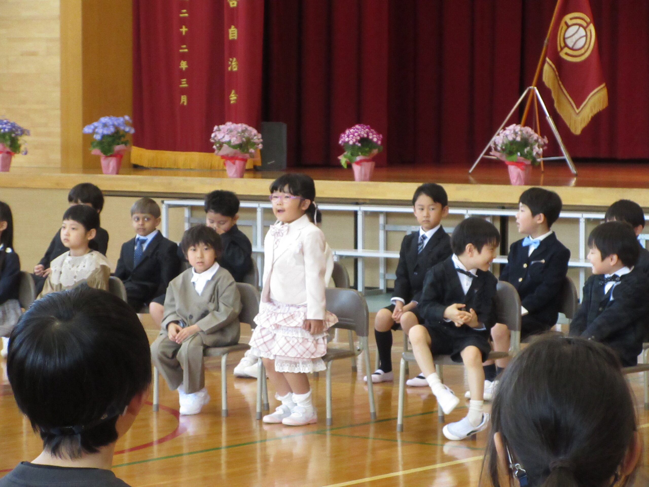 本番では、全員が大きな声で堂々と自己紹介をすることができました。また、友達の発表のときには静かに聞き、大きな拍手を送っていました。